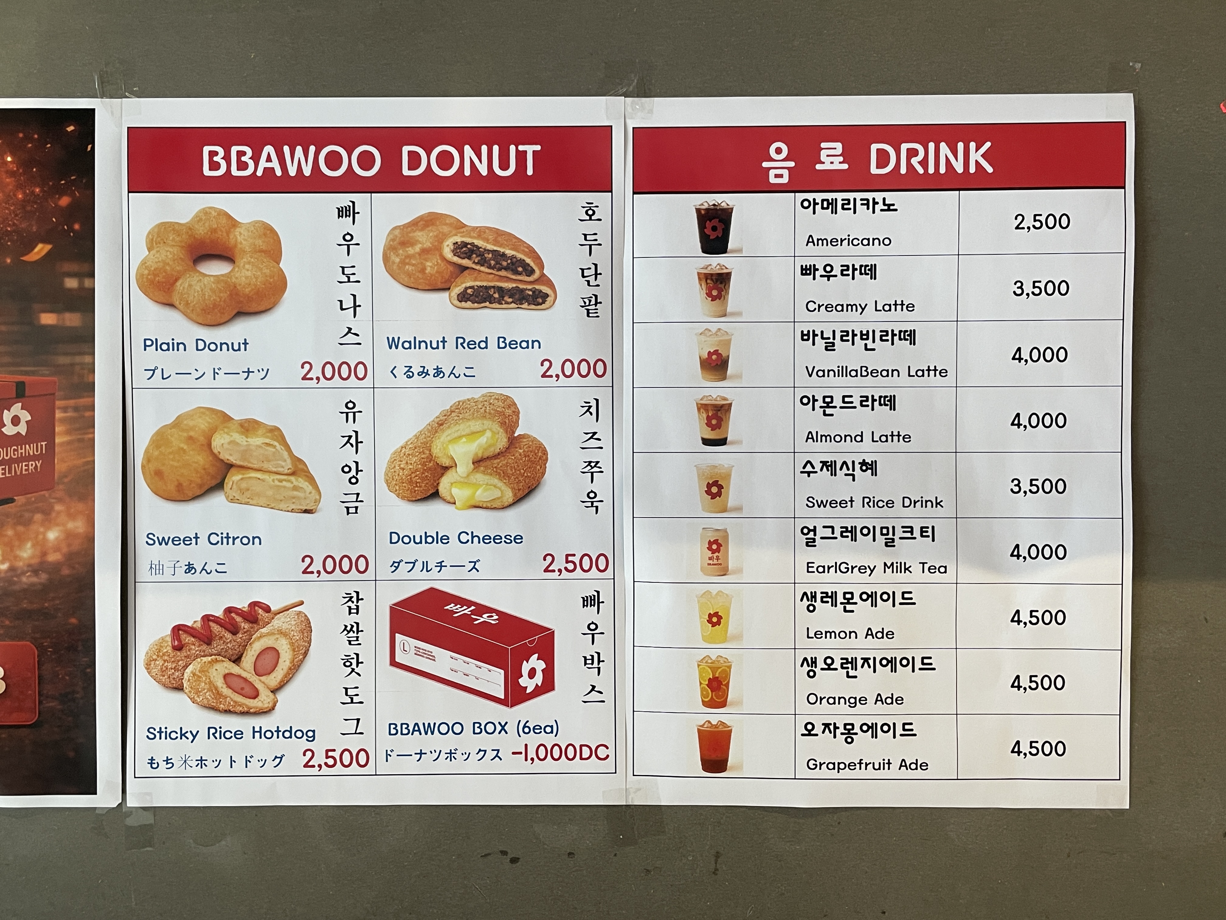빠우는 정말 다양한 도넛 맛이 있어요! 메뉴판 보면서 선택 장애 올 정도로 많더라고요 ㅋㅋㅋ
